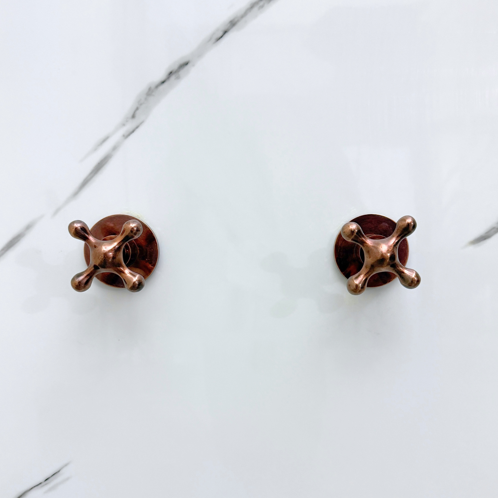 This wall-mounted shower system features a striking antique copper finish over solid brass construction, combining elegance with lasting durability. The brass arm supports a round rain shower head for a soothing rainfall effect, while the cross handles provide precise water control for an effortless and timeless shower experience. An optional Adjustable Shower Head Connector is available, allowing you to customize the shower angle for added comfort.