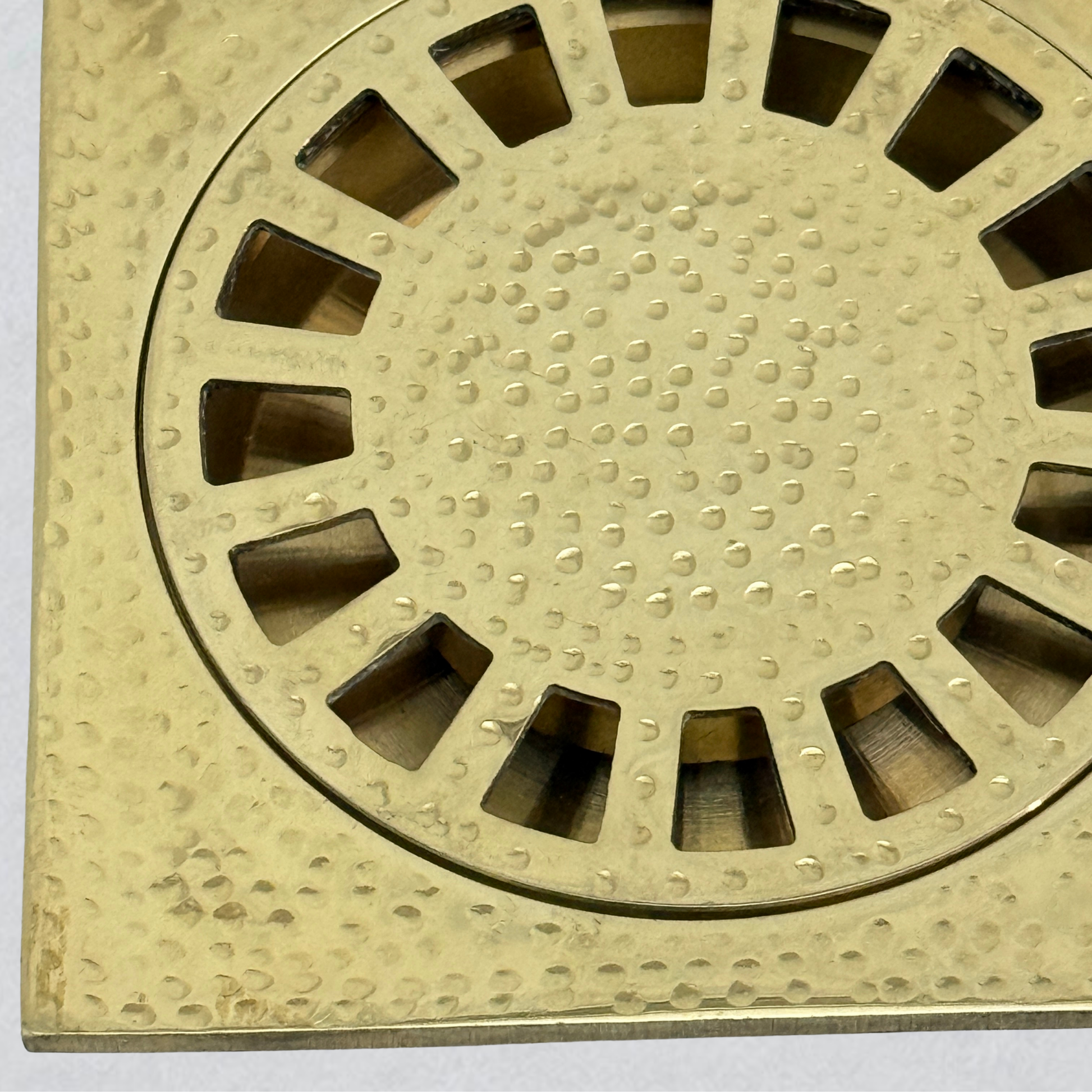Unlacquered Brass Hammered Shower Drain with Removable Cover, Solid Brass Square Shower Drain