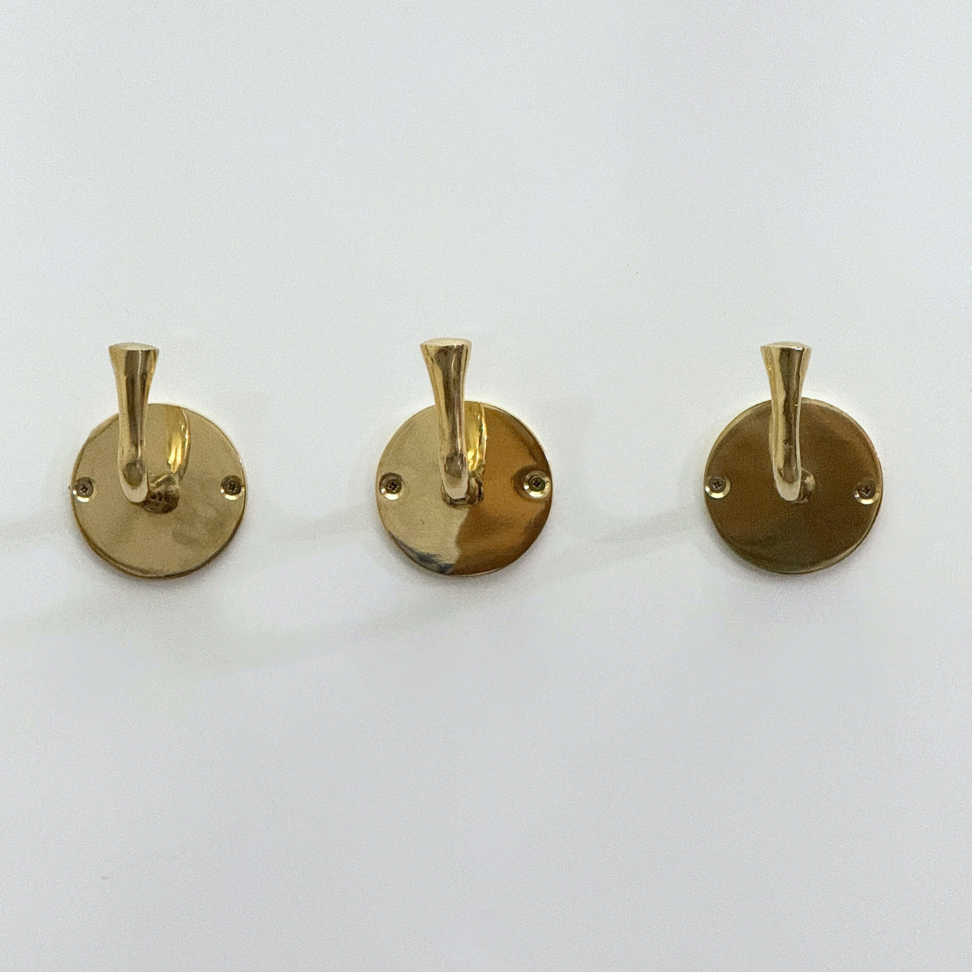 Unlacquered Brass hook crafted from premium solid brass. Featuring a natural unlacquered finish that develops a graceful patina over time. Its wall-mounted heavy duty design ensures strength and durability, making it ideal for robes, towels, or coats in both modern and classic spaces.