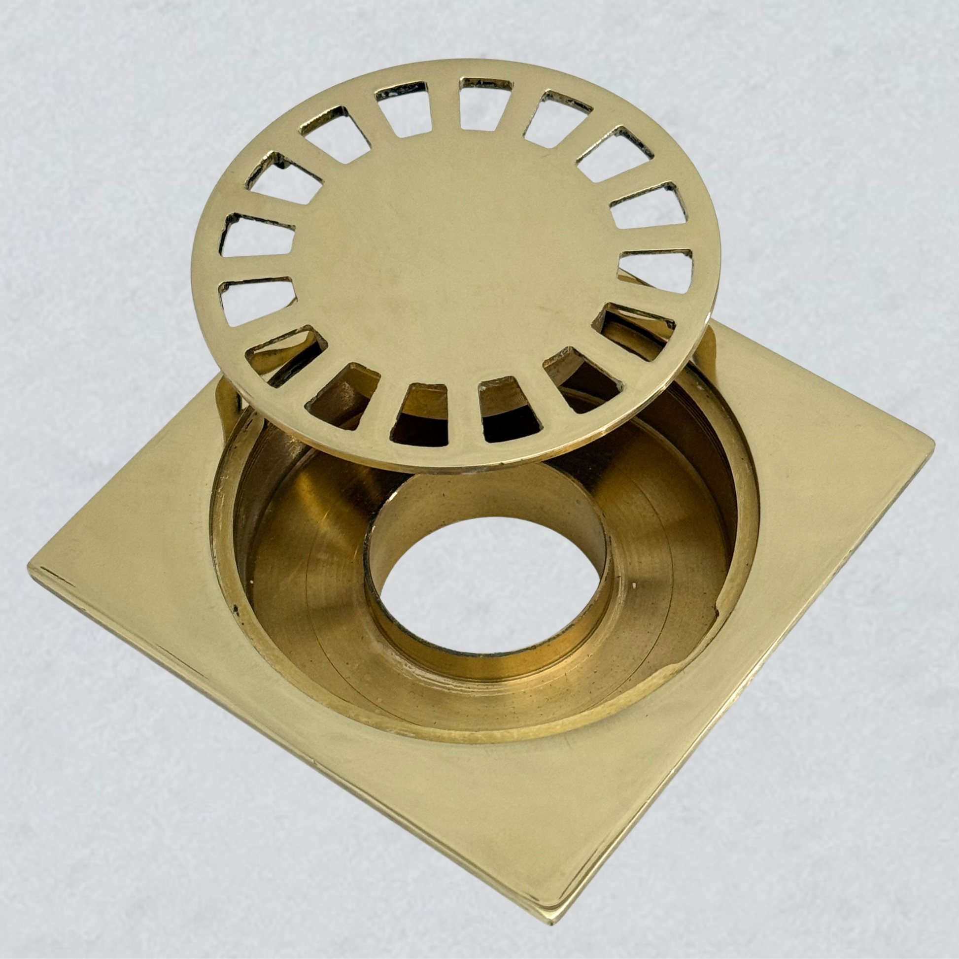 Unlacquered Brass Shower Drain with Removable Cover, Solid Brass Square Shower Drain