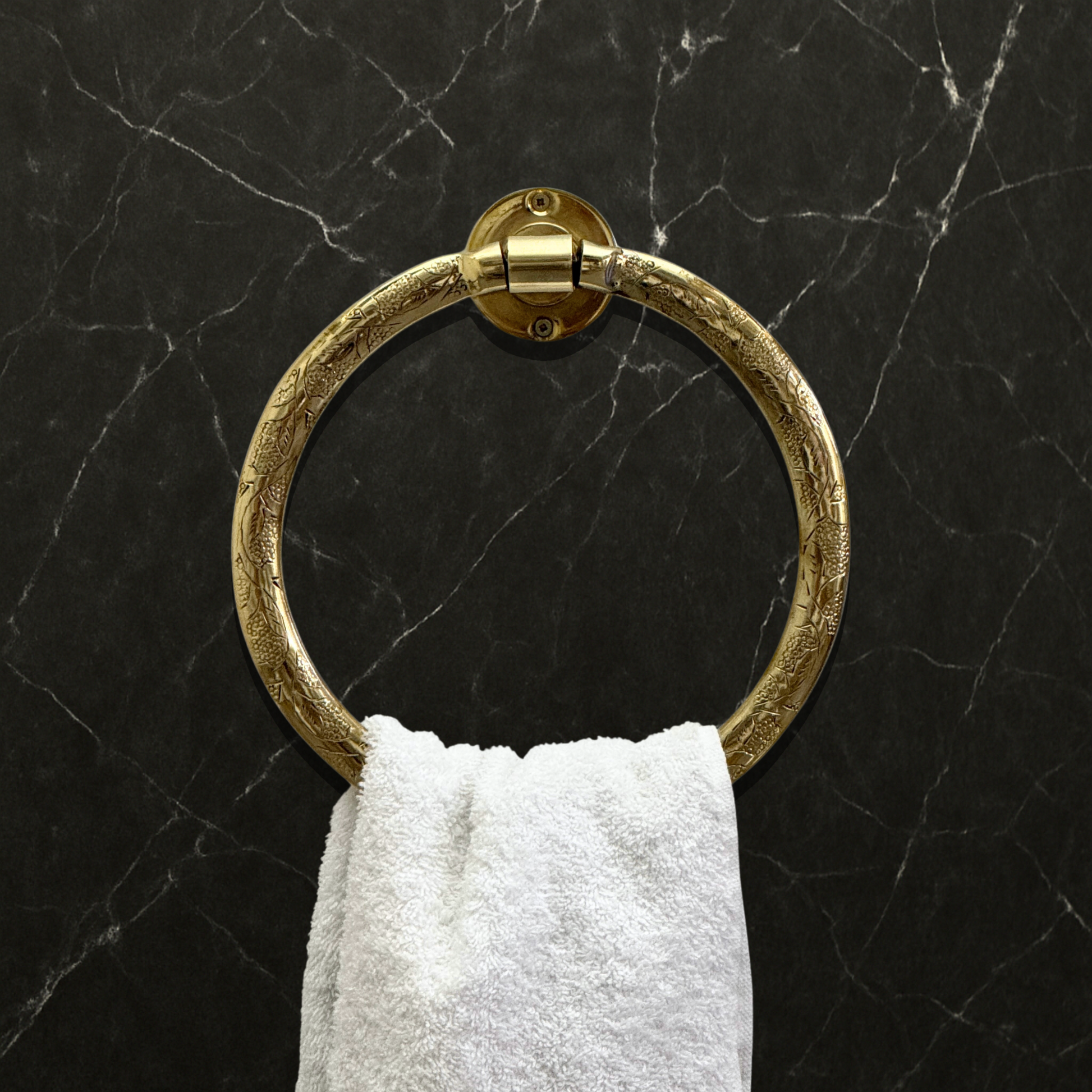 Unlacquered Brass Towel Holder, Hand Engraved Towel Hanger, Bathroom Wall Mounted Towel Ring